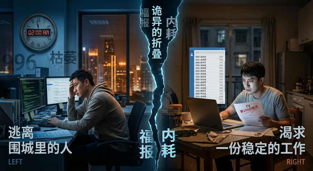 围城外的人,在投出第200份简历、换回一堆“已读不回”后,对着冰冷的屏幕发狠:“只要给我发工资,别说996,007我也认了。”