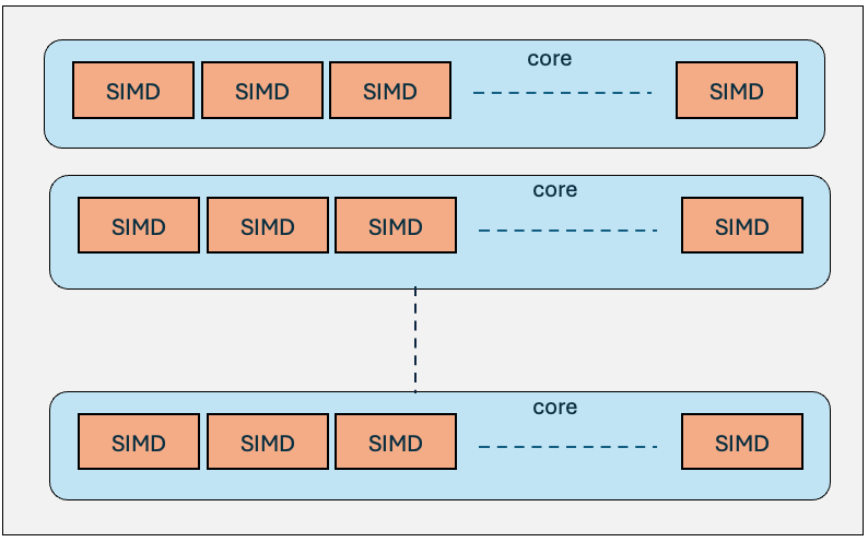 • SIMD(Single Instruction, Multi Data):向量处理器,一条指令处理多个数据